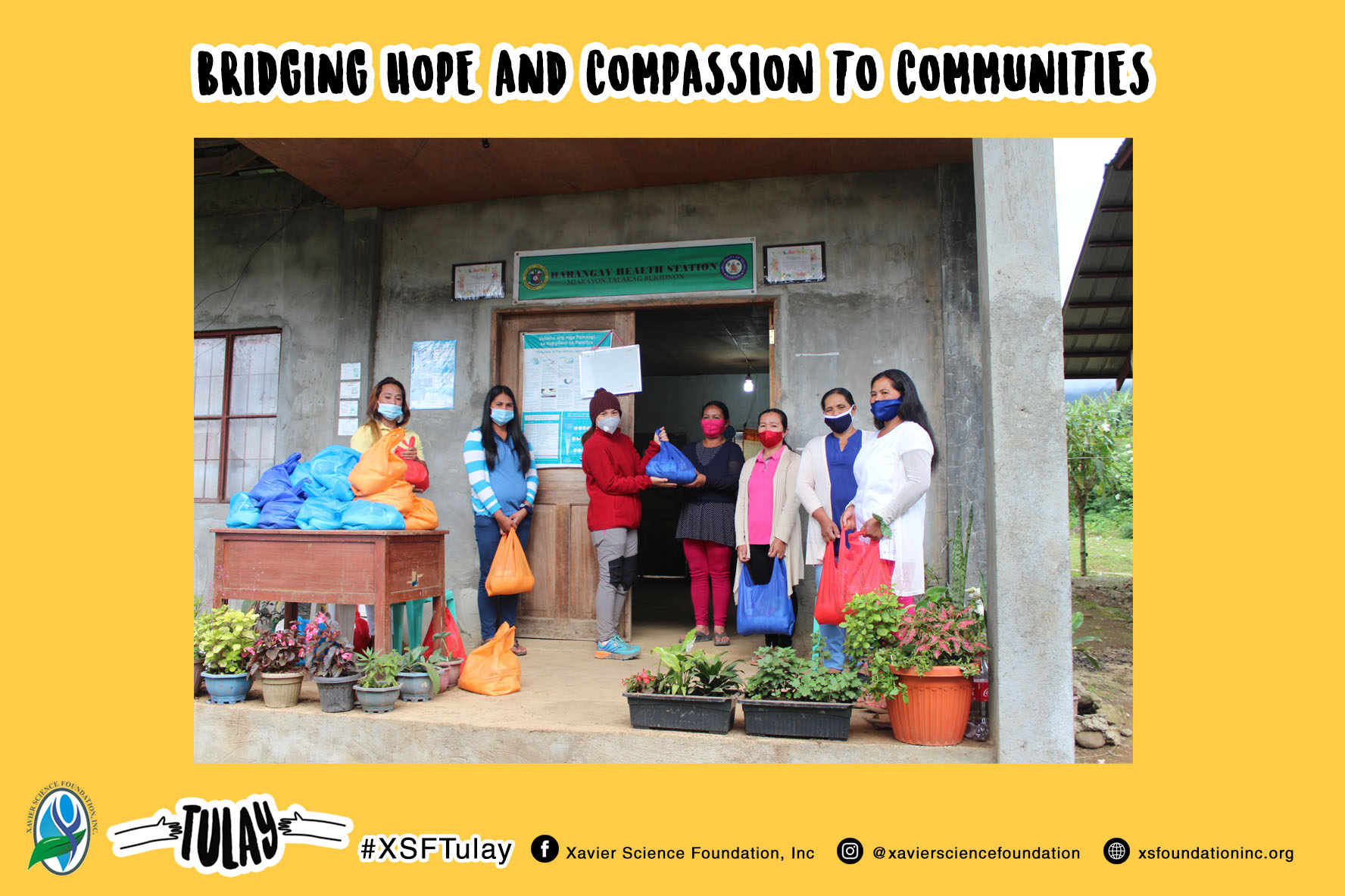 Through launching #XSFTulay, which was the gateway for us to innovate and sustain humanitarian and development aids brought about by the health crisis, we were able to provide generous amount of food relief packs to our partner communities in Bukidnon. This was made possible by our donors who generously helped us in this small milestone.